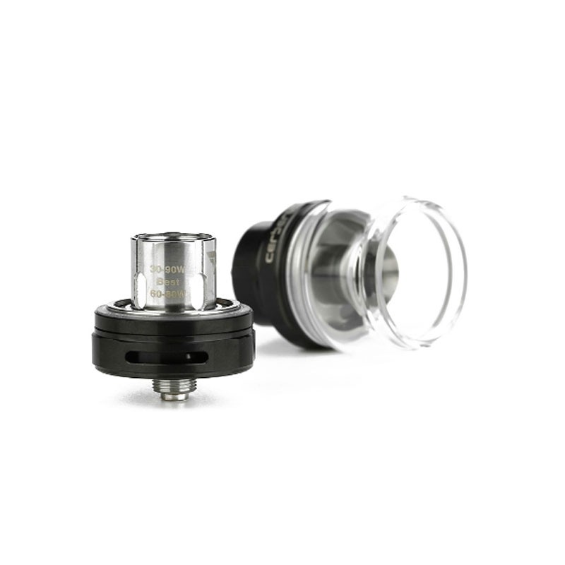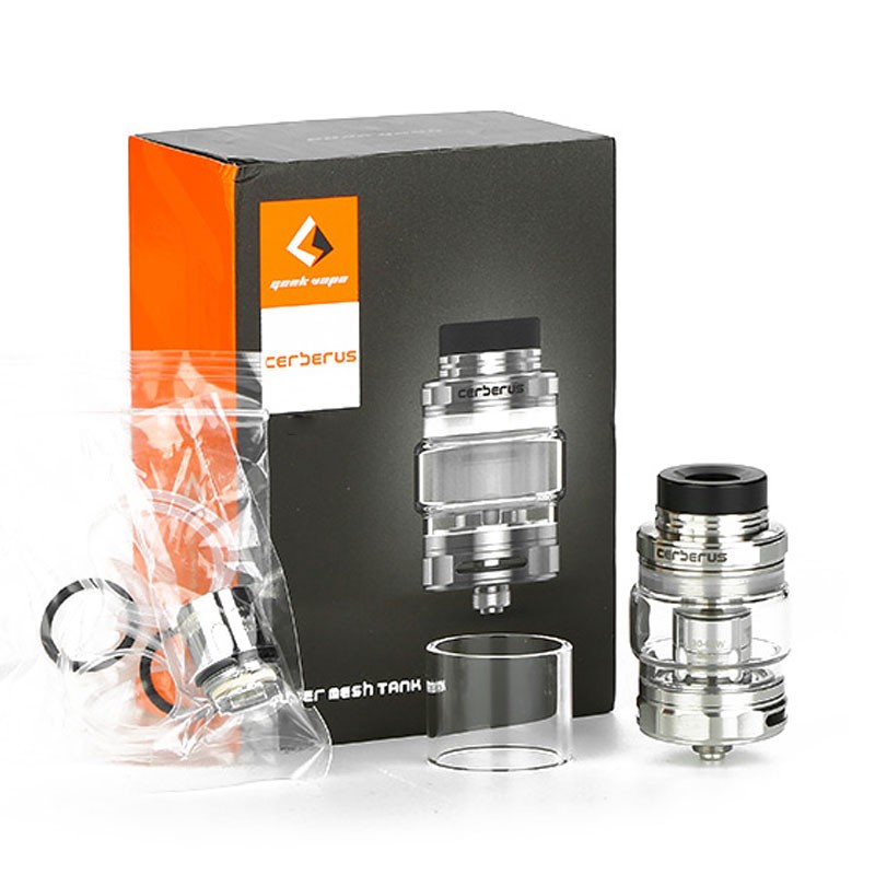 Der Geekvape Cerberus ist ein Kernverdampfer für den Direct-lung-Gebrauch. Die neuen, dazu passenden Supermesh-Coils von Geekvape sind dank Mesh State-of-the-Art und bringen eine hervorragende Geschmacksentwicklung sowie viel Dampf. Mit einem Durchmesser von knapp 27mm gehört er schon zu den breiteren Verdampfern, dafür ist er aber trotz einem Volumen von 4,0 bzw. 5,5ml (je nach verwendetem Glas) nur knapp 47mm hoch (inkl. DripTip).