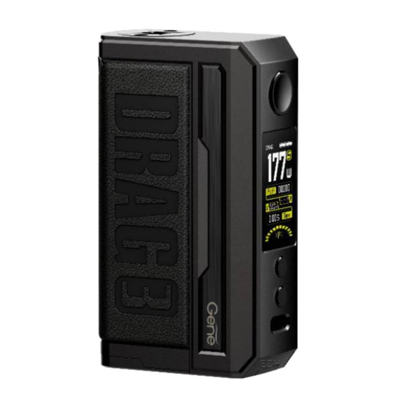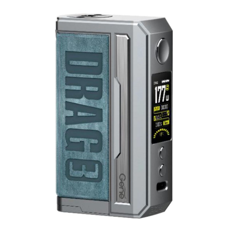 Der Drag 3 Akkuträger wurde optisch überarbeitet, hat aber in etwa diesselben Maße und denselben Style wie der Argus GT. Bestehend aus einer Zinklegierung und griffigem Leder liegt der Drag 3 Box Mod Akkuträger ergonomisch in der Hand und fühlt sich sehr leicht an, obwohl er es mit zwei wechselbaren 18650 Akkus aufnimmt. Mit dem neuen Advanced GENE.FAN 2.0 Chipsatz leistet der Drag 3 Mod nun bis zu 177 Watt. Darüberhinaus bringt er einige neue Features mit - neben den klassischen VW- oder TC-Modi zum temperaturgesteuerten Dampfen ist auch ein Smart-Modus an Bord, der den eingesetzten Kern (Coil, Head) automatisch erkennt und entsprechend die Leistung einstellt. Ein RBA Modus erlaubt dem Benutzer, noch weiter in die Einstellungen einzugreifen. Ein High Burst Super Mode sorgt dafür, dass der Drag 3 Mod nochmals schneller feuert.
