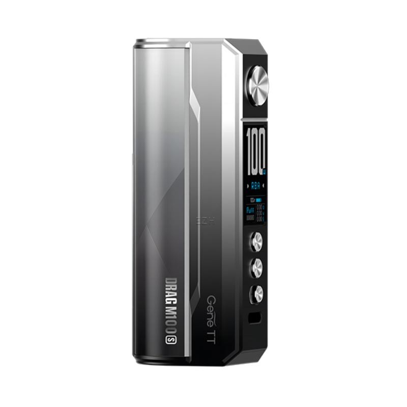 Neben seinem äußeren Erscheinungsbild beeindruckt der M100S Mod vor allem mit seiner herausragenden Leistung, die auf dem modernen Gene.TT 2.0 Chipsatz basiert. Mit einer 21700er oder 18650er Akkuzelle erreicht dieser kompakte Kraftprotz eine maximale Ausgangsleistung von 100 Watt und unterstützt Widerstände im Bereich von 0,05 bis 3,0 Ohm. Der Mod verfügt über einen intelligenten Smart-Modus, der den Widerstand der eingesetzten Coil automatisch erkennt und die Leistung entsprechend anpasst, einen RBA-Modus für die individuelle Leistungseinstellung (VW) sowie einen Eco-Modus für eine energieeffiziente Nutzung des Akkus beim Dampfen. Für Fans des temperaturgeregelten Dampfens stehen vier TC-Modi zur Verfügung, die mit Ni200, Ti, SS316 und SS430 arbeiten und einen Temperaturbereich von 100-315°C abdecken. Umfassende Schutzfunktionen gewährleisten einen zuverlässigen und sorgenfreien Betrieb dieses eleganten Mods.