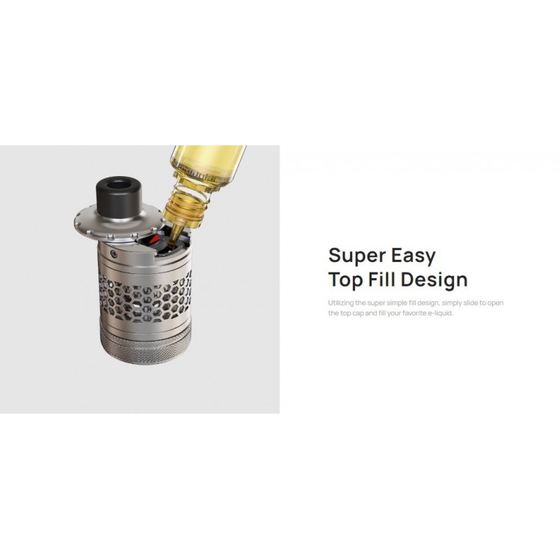 Auch das Befüllen geht kinderleicht von der Hand und ist daher aber mit einer ausgeklügelten Kindersicherung versehen. Nachdem dafür zunächst das DripTip (Mundstück) abgezogen wurde, muss die TopCap über einen Entriegelungsknopf entsperrt werden und kann dann ein Stück zur Seite geschoben werden. Im Alltag zeigt sich das überaus bedienerfreundlich, auch weil die TopCap nicht komplett abgenommen werden muss. Zudem schließt sich durch Entnahme des Kerns nun automatisch die Liquidzufuhr, so dass der Kernwechsel auch bei vollem Tank möglich ist.