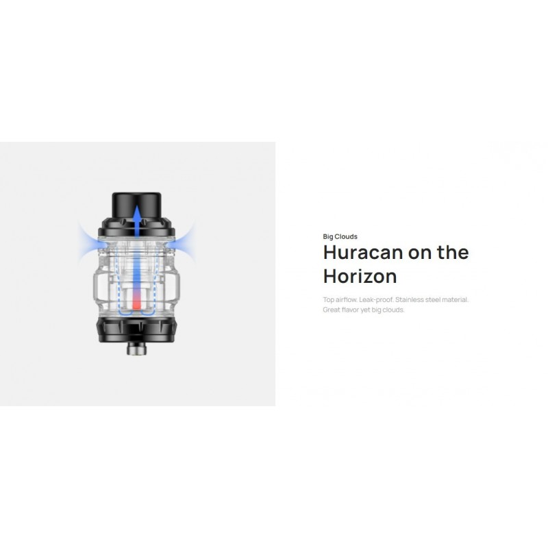 Der Huracan Tank fasst 6ml Liquid und wird über ein sauberes TopFilling-Prinzip von oben befüllt. Eine stufenlos regulierbare Dual-Slot-Top-Airflow strömt die Coils aus perfektem Winkel an und sorgt zudem dank einer ausgeklügelten Bauweise für einen auslaufsicheren Betrieb (Leak-free). Die recht kompakt konstruierte Verdampferkammer unterstützt die Intensität beim Geschmack. Das ergonomisch gestaltete, breite DripTip in 810er-Größe rundet das Angebot ab.