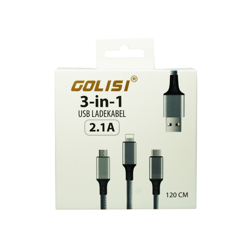 1x Golisi USB Kabel 3in1 (MicroUSB, USB Typ C, Lightning)