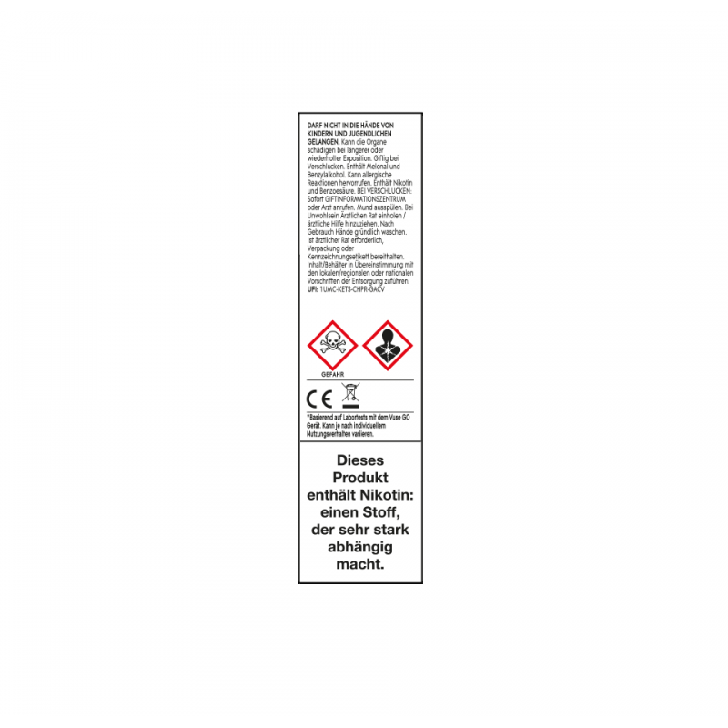 *Basierend auf Labortests mit dem Vuse GO Gerät. Kann je nach individuellem Nutzungsverhalten variieren.