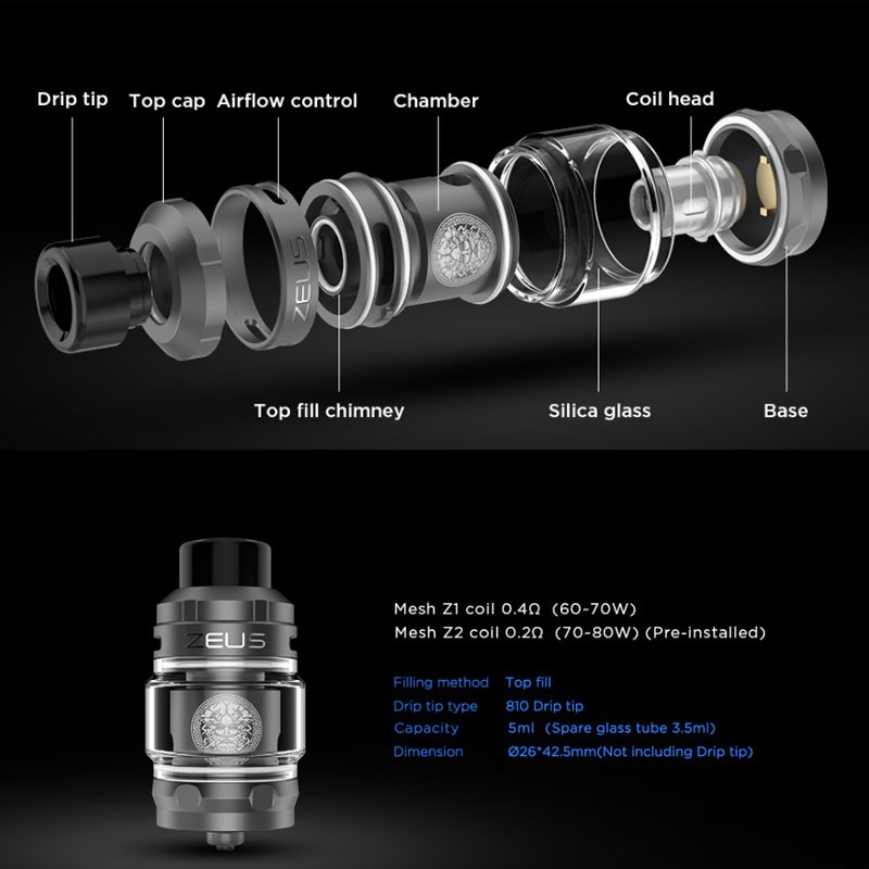 Die Z-Verdampferreihe war schon immer auch aufgrund der Top-Airflow beliebt. Dieses Prinzip kommt auch beim Z Subohm Verdampfer wieder zum Einsatz. Durch die Glasbauweise ist er nach unten hin auslaufsicher. Zudem sorgt ein ausgeklügeltes Luftstromprinzip (Top to Bottom) für eine optimale Belüftung des Coils und zuletzt eine angenehme Wärmeentwicklung bis hin zum Mundstück.