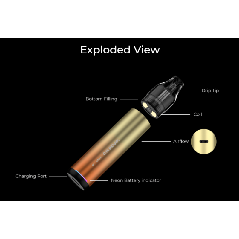 Die LED-Anzeige auf dem Veco Go informiert Dich stets über den Betriebsstatus, den Ladefortschritt und den Akkustand. Du behältst immer den Überblick. Die Airflow Control kannst Du durch einfaches Drehen des Pods auf dem Gerät an Deine persönlichen Vorlieben anpassen, um den Zugwiderstand zu optimieren.