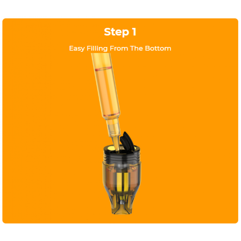 Mit einem beeindruckenden Tankvolumen von 5,0 ml und dem praktischen Bottom-Fill-System mit Silikonverschluss kannst Du Deinen Lieblings-Liquid ganz einfach nachfüllen. Das ergonomische Mundstück sorgt für angenehmes Dampfen, während die SSS Leak-Resistant Technology dafür sorgt, dass kein Tropfen Liquid verloren geht.