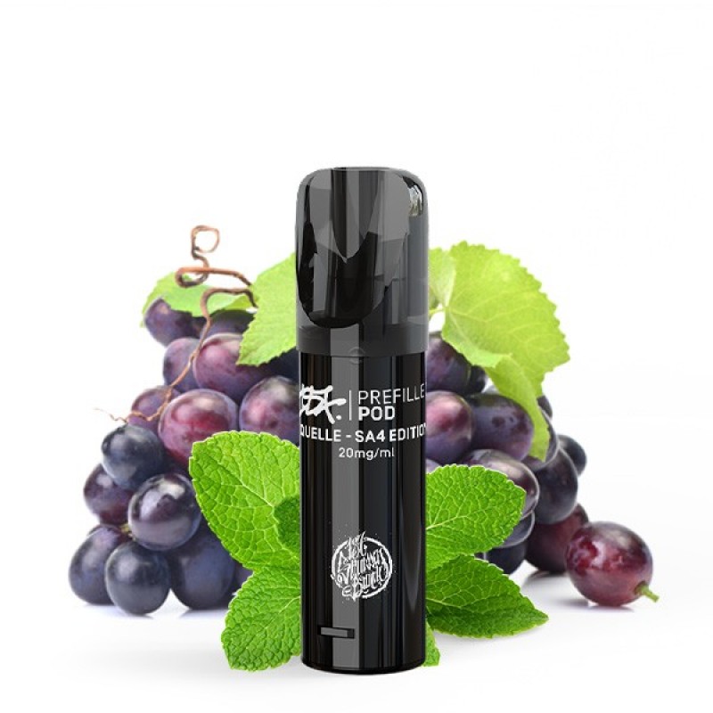 Die neuen Pods sind die überaus praktische Alternative zu den gewohnten 187 Einweg-E-Zigaretten und erlauben Dir den schnellen Wechsel der gewünschten Geschmacksrichtung. Natürlich sind alle bekannten Sorten mit an Bord - so auch die Favoriten der 187 Strassenbande. Für das fruchtig-frische Liquid namens Quelle ist Rapper SA4 verantwortlich. Das Aromaprofil überzeugt mit einer belebenden Flavour-Fusion aus vollmundiger Traube und eiskalter Minze, die Deine Geschmacksknospen so richtig wach kitzelt. Die Traubenkomponente besticht dabei mit einer perfekten Balance aus süßen und herben Anteilen, während die Minze stark an ein leckeres Spearmint-Kaugimmi erinnert.