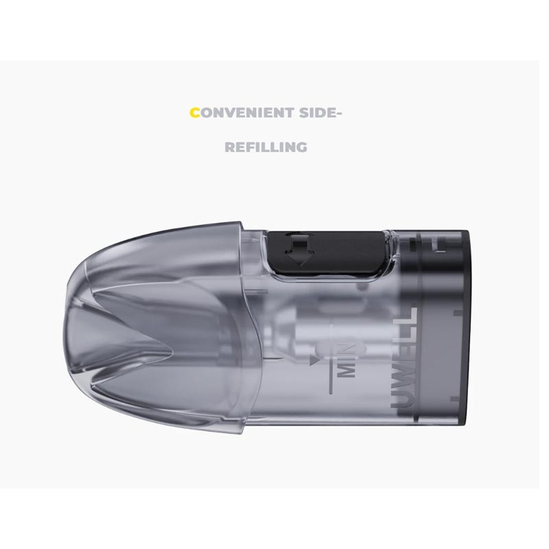 Das Caliburn A3S Kit von Uwell wird mit zwei A3S Pods geliefert, die mit fest verbauten Mesh Coils in Widerständen von 0,8 und 1,0 Ohm ausgestattet sind. Die Pods werden magnetisch sicher auf dem Stick befestigt und durch das transparente Design und das großzügige Sichtfenster im Stick hat man jederzeit den perfekten Überblick über die 2,0 ml Liquid im Inneren der Pods. Die seitliche Befüllung mit Silikonverschluss ist einfach und die Luftführung ist auf ein klassisches Mund-zu-Lunge-Dampfen ausgelegt, das ungetrübten MTL-Genuss ermöglicht. Uwells Pro-FOCS Flavor Adjustment Technology sorgt bei jedem Zug am angenehmen Mundstück für ein herausragendes Geschmackserlebnis und dichten, weichen Dampf. Der Coil-Aufbau gewährleistet eine optimale Verdampfung des Liquids ohne Dry-Hits oder Leckagen.