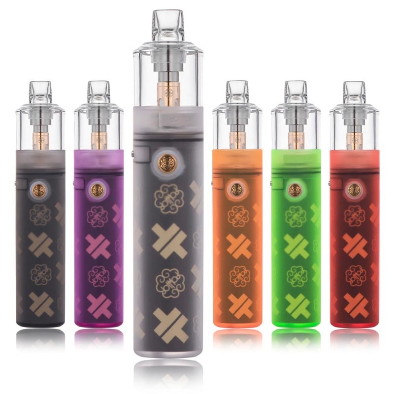 Das dotStick Revo Pod Kit ist mit gerade mal knapp 111mm Höhe bei einem Durchmesser von nur 22,5mm äußerst klein und schmiegt sich mit diesen Maßen in jede Hand. Die zugleich farbig und aber transparent gestaltete Außenhaut aus "Frosted PCTG" gibt einen dezenten Blick auf das Innere des Kits frei und macht das Gerät auch mit den Verzierungen zu einem echten EyeCatcher!