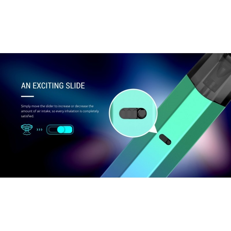 Auf der Rückseite des Nfix Pro Sticks befindet sich ein Schieberegler, über den die variable AirFlow (Luftzugwiderstand) stufenlos eingestellt werden kann, was eine noch präzisere Anpassung des individuellen Dampfverhaltens ermöglicht.