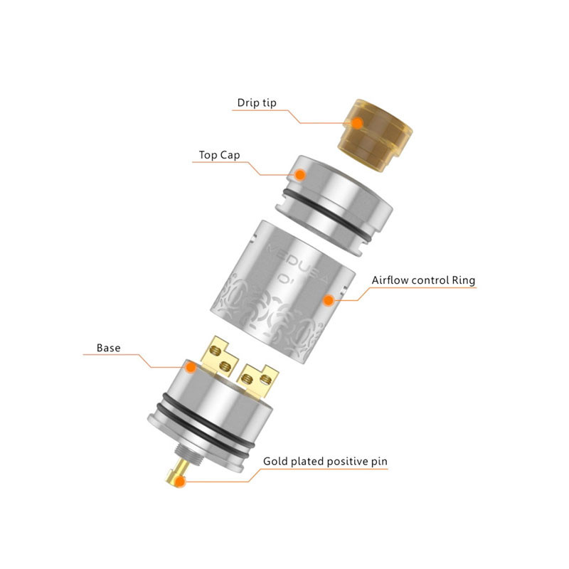 Der Medusa Reborn RDTA ist vor allem auf einen offenen, Shisha-ähnlichen Zug (DL) ausgelegt. Neben dem beiliegenden 810er DripTip befindet sich noch ein 510-DripTip Adapter mit im Lieferumfang.