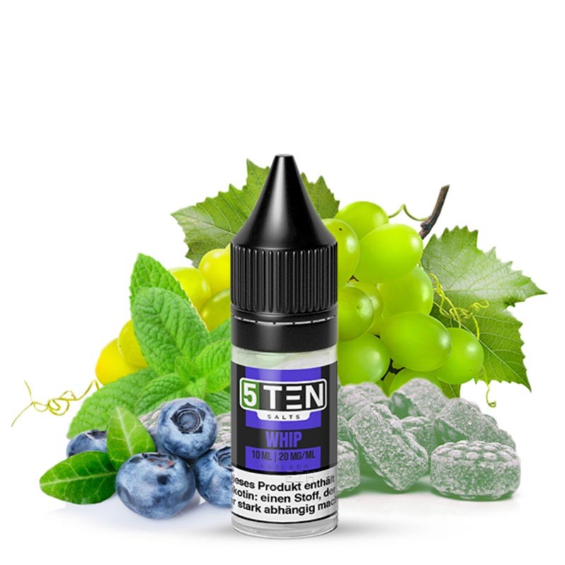 Das einzigartige Nikotinsalz-Liquid "Whip" von 5 Ten wird dich mit seinem einzigartigen Geschmackserlebnis umhauen. Die Aromaspezialisten haben hierfür aromatische Blaubeeren, saftig-süße Trauben, ein leckeres Kräuterbonbon und eine perfekt dosierte Prise Koolada kombiniert. Die reifen Blaubeeren und saftigen Trauben sorgen für eine fruchtige Note, die sowohl süß als auch leicht herb ist und deine Geschmacksknospen verführen wird. Das Bonbon gibt dem Liquid einen charakteristischen süßen Candy-Geschmack, der mit dem Aroma verschiedener Kräuter verfeinert ist. Abgerundet wird das Geschmackserlebnis durch eine erfrischende Kühle, die sich besonders beim Ausatmen bemerkbar macht und für eine angenehme Frische sorgt.