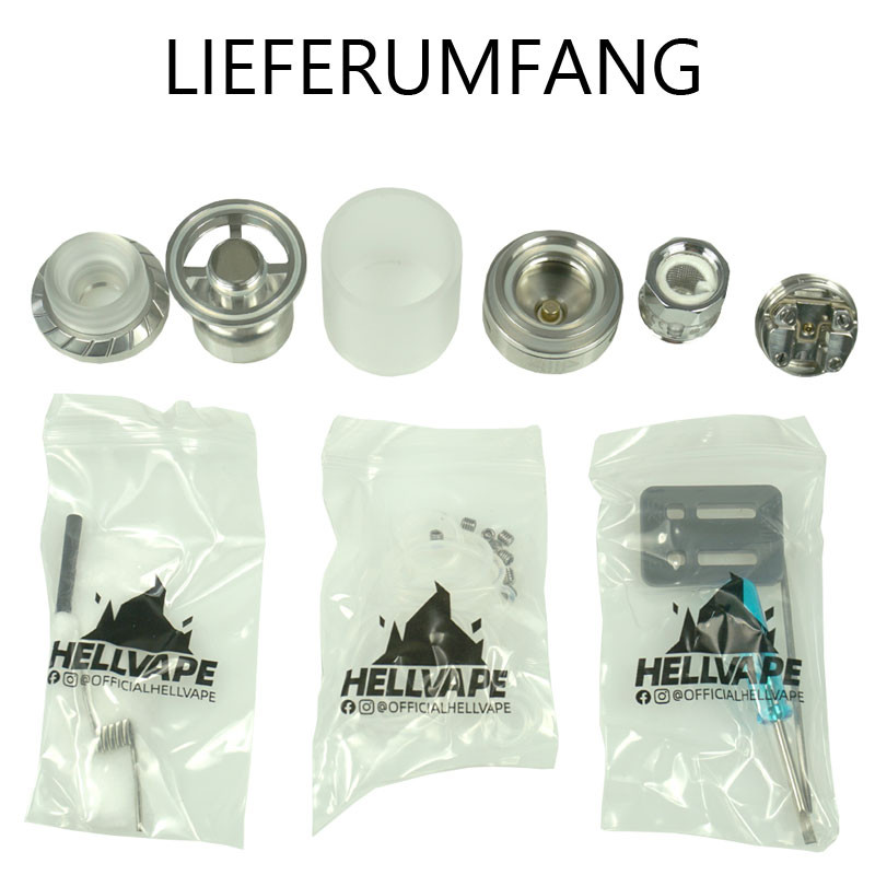 Als Fertigcoiler nutzt der HellVape 424 RTA eigene, sehr performante Mesh Coils, von denen einer im Lieferumfang enthalten ist. Alternativ passt auch die gesamte Baby-Kernreihe von Smoktech, die HW-Serie von Eleaf oder auch die Supermesh Coils von Geekvape - man hat also sprichwörtlich die Qual der Wahl.