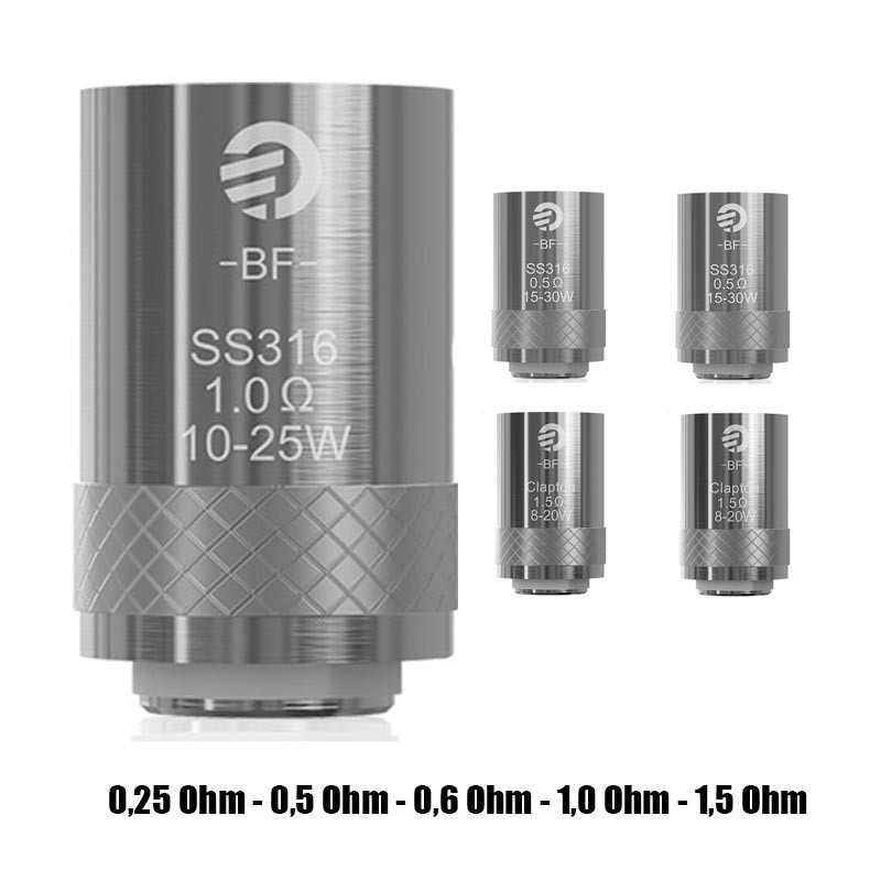 Hier erhälst Du die Joyetech BF Kerne (Heads). Mit Edelstahl (SS316) und 100% organischer Baumwolle schmecken sie klasse und machen eine Menge Dampf. Zudem lassen sich die Edelstahlkerne sowohl in Watt wie auch im Temperaturmodus dampfen. Es stehen Kerne mit 0,25, 0,5, 0,6, 1,0 Ohm sowie 1,5 Ohm zur Auswahl.