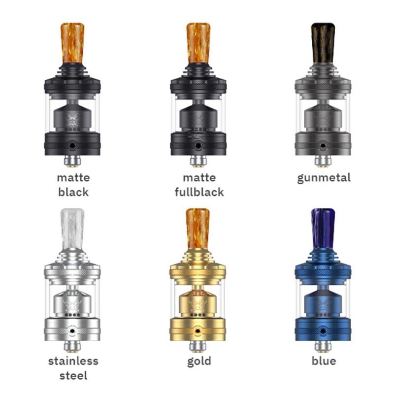 Alle Bedienelemente wie Top-Cap und AFC-Ring wurden wieder einmal angenehm griffig gerändelt und mit einem Base-Durchmesser von 23mm macht der Dead Rabbit MTL RTA auf einer Vielzahl von Akkuträgern in 6 stilischen Farbvarianten eine tolle Figur. Um das Tankglas vor Beschädigungen zu schützen, ragen Top- und Base-Sektion etwas über das Glas hinaus, sodass der Tank im Falle eines Sturzes nicht direkt auf dem Glas aufschlägt ("Glass Drop-Proof Design"). Je nach verwendetem Tanksegment und Drip Tip variiert die Gesamthöhe des Dead Rabbit von 49.4 bis 64.4 Millimetern.