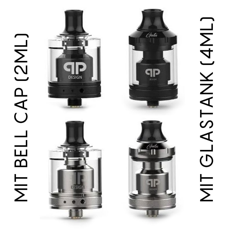 Im Lieferumfang des Gata RTA sind zwei verschiedene Tanks enthalten: Der klassischer Glastank bringt 4ml Tankvolumen mit und lässt sich bequem via TopFilling von oben befüllen. Die alternativ mitgelieferte BellCap sieht klasse aus, hat einen 2ml Tank und wird klassisch von unten befüllt.