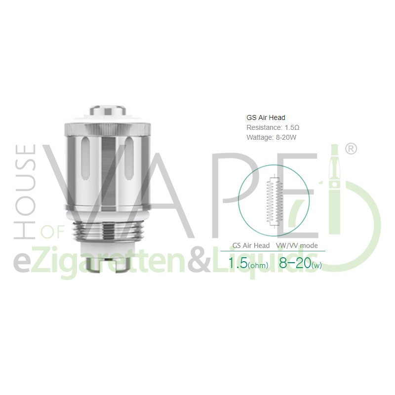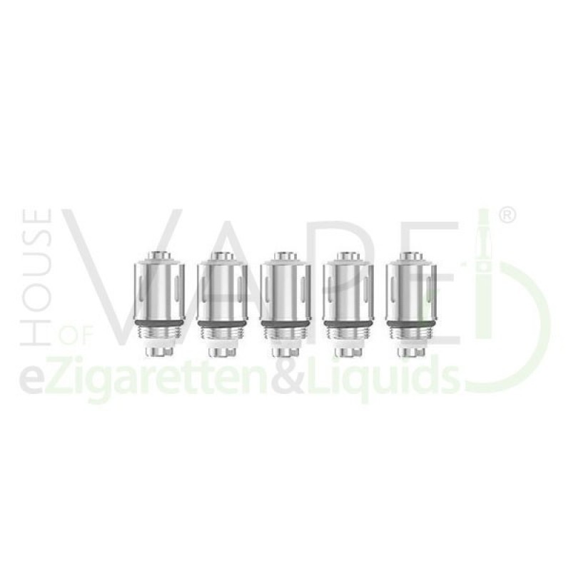 Hier erhältst Du die GS Kerne von Eleaf mit 0,75 oder 1,5 Ohm Widerstand. Die Kerne waren eine der ersten, niederohmigen Backendampfer-Kerne (MTL). Sie passen in diverse Geräte von Eleaf, unter anderem auch in die iJust Start (Plus) und das Pico Baby Set. Der Kern mit 1,5 Ohm Widerstand ist nochmals etwas sparsamer im Liquid- und Stromverbrauch, macht aber dafür ein bisschen weniger Dampf. Der Kern mit 0,75 Ohm hat eine schöne Dampfentwicklung und eine intensivere Geschmacksaubildung, benötigt dafür aber auch etwas mehr Leistung und die Liquidflasche ist etwas schneller leer, wobei die GS-Serie generell sehr wirtschaftlich ist.