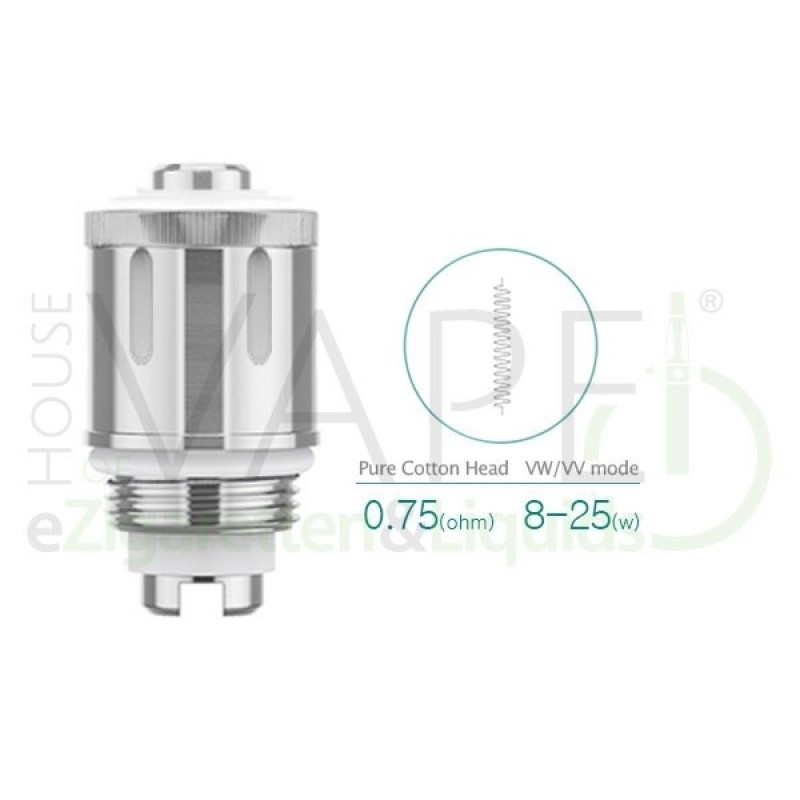 - Mit 0,75 Ohm für 8-25 Watt mit Pure Cotton