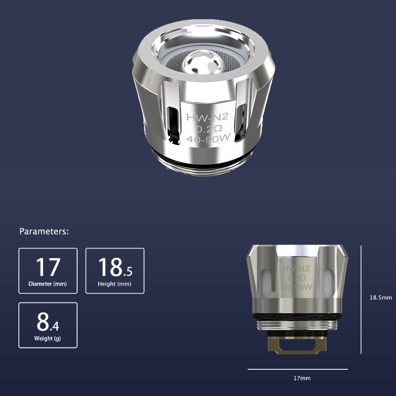 - HW-N2: Kanthal Net (Mesh) Coil mit 0,2 Ohm für 40-90 Watt (Best 60-70W)