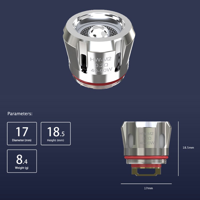 - HW-M2: Kanthal Multihole (Mesh) Coil mit 0,2 Ohm für 40-90 Watt (Best 60-70W)