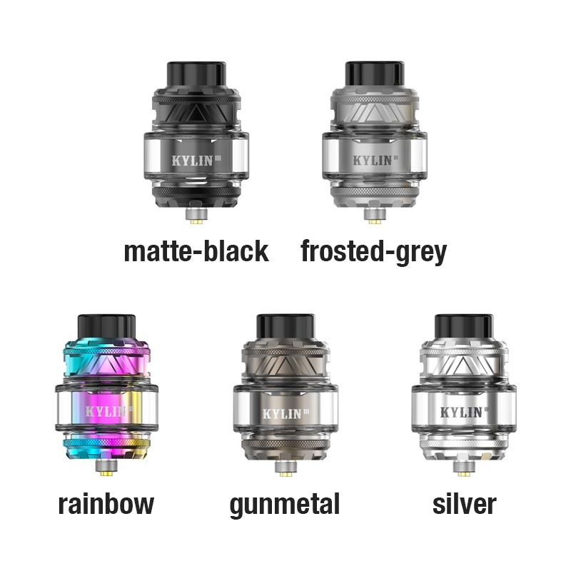 Der Kylin V3 verfügt über einen vorinstallierten Borosilikatglas-Tank mit einem beeindruckenden Fassungsvermögen von 6,0 ml Liquid. Alternativ wird auch ein Standard-Glas mitgeliefert. Das Top-Fill-System unter der leicht zu bedienenden Top-Cap ermöglicht ein einfaches Befüllen. Ein wechselbares 810er Wide-Bore Drip Tip aus lippenschmeichelndem Resin ziert die Top-Cap. Alle Bedienelemente sind angenehm griffig gestaltet, was die Handhabung dieses schicken RTA-Verdampfers äußerst komfortabel macht. Der Kylin V3 lässt sich zudem leicht in seine Einzelteile zerlegen, was eine schnelle und gründliche Reinigung ermöglicht.