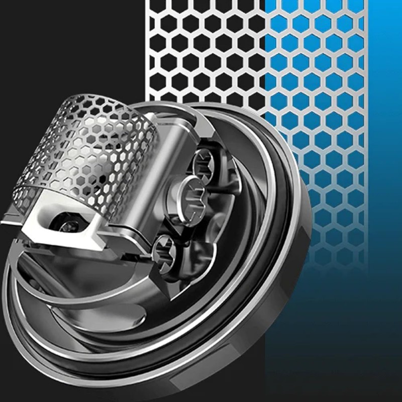 Ein weiteres Highlight ist die Top-AirFlow - diese sitzt beim Profile x RTA über dem Tank, was ihn deutlich alltagstauglicher macht. Diese lässt sich stufenlos justieren. Luftlöcher im Wabendesign (Honeycomb) sorgen dabei für eine perfekte Zirkulation der Luftmenge und ein direktes Auftreffen auf die Wicklung(en), was in Verbindung mit der kompakten Kammer ein grandioses Geschmackserlebnis verspricht.
