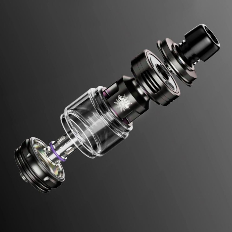 Der UForce-L Tankverdampfer hat einen Gesamtdurchmesser von 25,5mm und besteht aus Edelstahl und Borsilikatglas. Er fasst je nach verwendetem Glas (geradlinig oder Bubble, beide enthalten) 4,0 oder 5,5ml Liquid und wird bequem von oben befüllt (TopFilling). Hierzu schraubt man die TopCap ab, wodurch sich die Befüllöffnungen zeigen. Für eine optimale Luftzufuhr sorgt eine auslaufsichere Top-to-Bottom-AirFlow, die die Luft von oben ansaugt und über drei speziell designte Lufteinlässe direkt auf den Coil führt. Ein griffig gestalteter AirFlow-Control-Ring ermöglicht die stufenlose Anpassung des Zugwiderstands.