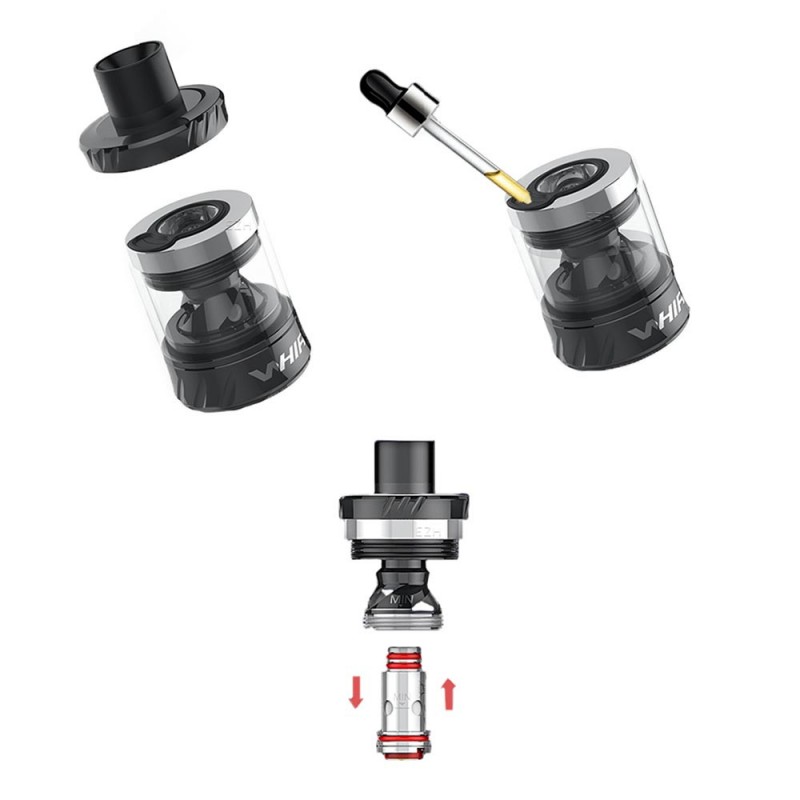 Bei Kernwechsel neuen Kern an den seitlichen Liquidzufuhrlöcher mit Liquid befeuchten. Dann Liquid einfüllen und 10 min. warten, damit sich neuer Kern mit Liquid füllen kann. Wir empfehlen, den neuen Kern auf niederiger Leistung 5 Züge einzudampfen und nicht gleich mit Vollgas loszulegen.